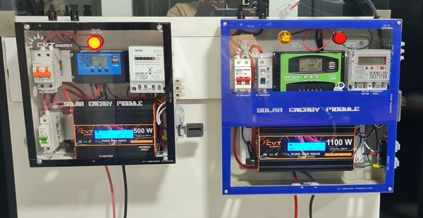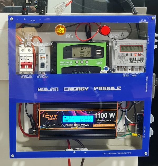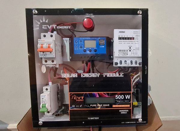 Modulo Solar - tablero con inversor hibrido de 1.5 kva + controlador PowMr + protecciones + medidor de energía + 2 paneles gigantes + 1 batería de 150 Ah expandible + cableado Todo ensamblado y listo para usar